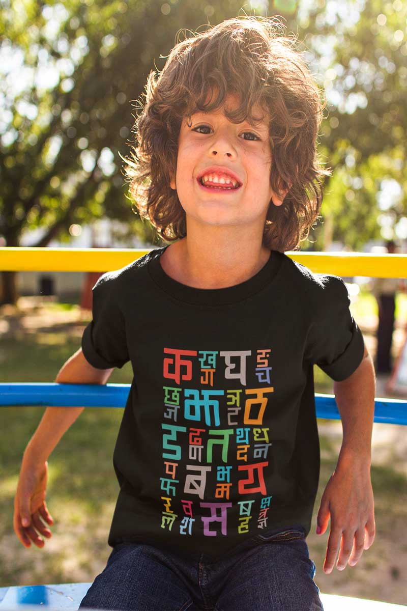 Celebrate culture in style with this Devnagari Letters Kids Cotton T-Shirt. Made from soft, breathable cotton, it keeps kids comfy all day while showcasing bold script design—perfect for school, outings, and everyday wear.
